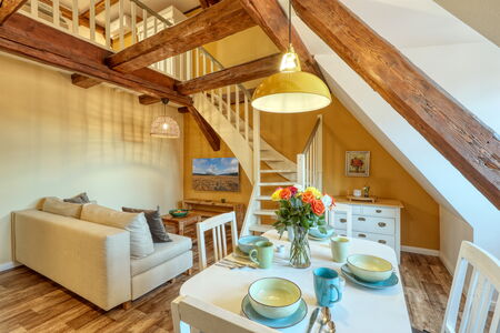 Genießen Sie die perfekte Mischung aus Fachwerkcharme und modernem Wohnkomfort. Von der voll ausgestatteten Küche bis zum komfortablen Schlafbereich wurde an jedes Detail gedacht, um den Aufenthalt so angenehm wie möglich zu gestalten. Einige unserer Ferienwohnungen bieten einen Balkon oder eine stilvolle Maisonette im Dachgeschoss – ideal für einen entspannten Aufenthalt mit besonderem Flair.